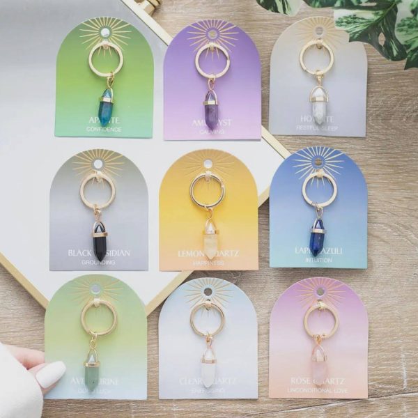 Ametista - Tranquilidade Apatite - Confiança Aventurina - Boa sorte Limão - Felicidade Quartzo rosa - Amor Incondicional Quartzo transparente - Energizante